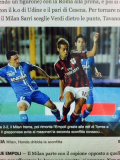 ガゼッタ・デッロ・スポルト、コッリエレ・デッロ・スポルト等のイタリア各紙は発熱が伝えられた本田圭佑選手が4-3-3の右サイドで先発予想。エル・シャーラウィ、ジェレミー・メネスと共に先発でのプレーの見込みと報じました。そしてその試合、ミランはアウェーでジェノアと対戦。体調不良を伝えられた本田圭佑選手は右FWで先発で後半26分までプレー。試合は32分にアントネッリにゴールを奪われ0-1で敗れています。インテルはイカルディのゴールで先制するもブルーノ・フェルナンデス、テローのゴールでウディネーゼに2-1の逆転負け。長友選手フル出場