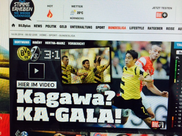 マインツ岡崎慎司選手今季7点目を決めるもシャルケに4-1の完敗。シャルケのフンテラールはハットトリック達成、内田篤人選手フル出場でゴールの起点になる場面も。ヘルタベルリンはホームでのバイエルン戦は27分のロッベンのゴールで0-1の惜敗。細貝萌選手フル出場、原口元気選手76分からのプレー。