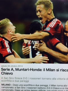 1/15にはミランがスペツィアと対戦、ロビーニョ、パッツィーニ、本田のゴールで3-1で勝利。シエナはアウェーでカターニアに4-1で勝利、ナポリは先制を許すもカジェホンの2ゴール等でアタランタに3-1で勝利です。