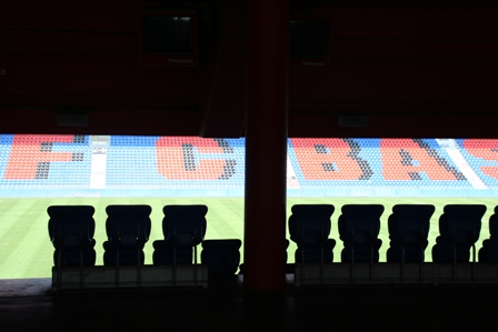 オフシーズンのため内部を改修工事を行っているようでしたが開幕が早いスイスリーグですから芝生も御覧のように敷き詰められており奇麗な姿を見せてくれました。さて写真にはありませんがこのスタジアムと同じ建物で隣接するショッピングセンターでは食料品からファッション、スポーツ用品まであらゆるショッピングを楽しむことが可能です。ちなみに私は夜に飲む美味しいワインを見つけてホテルへ帰りました。